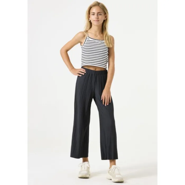 Plissé broek met midwaist en elastische taille. Een perfect item voor een casual look! Deze broek heeft een lange lengte en een straight fit. Dit item is gemaakt van 65% recycled polyster, 32% viscose en 3% elastaan.