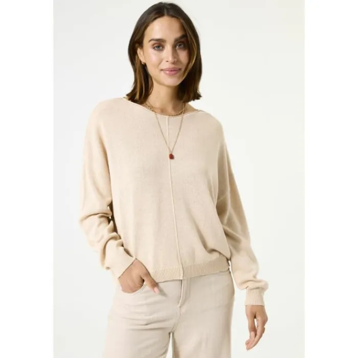 Trui met wijde halslijn. Een fijn item als deze mag niet ontbreken in jouw garderobe! Deze trui heeft lange mouwen en een dropped shoulder fit. Dit item is gemaakt van 50% polyester, 30% viscose en 20% linnen.