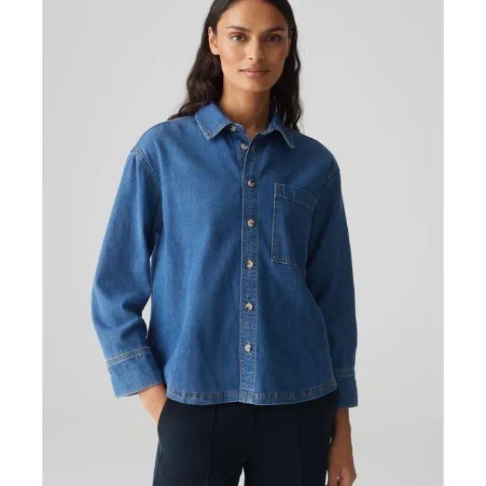Omschrijving: Deze denim blouse is een echte allrounder – hij kan dichtgeknoopt gedragen worden als een standalone basic of casual met een shirt eronder.