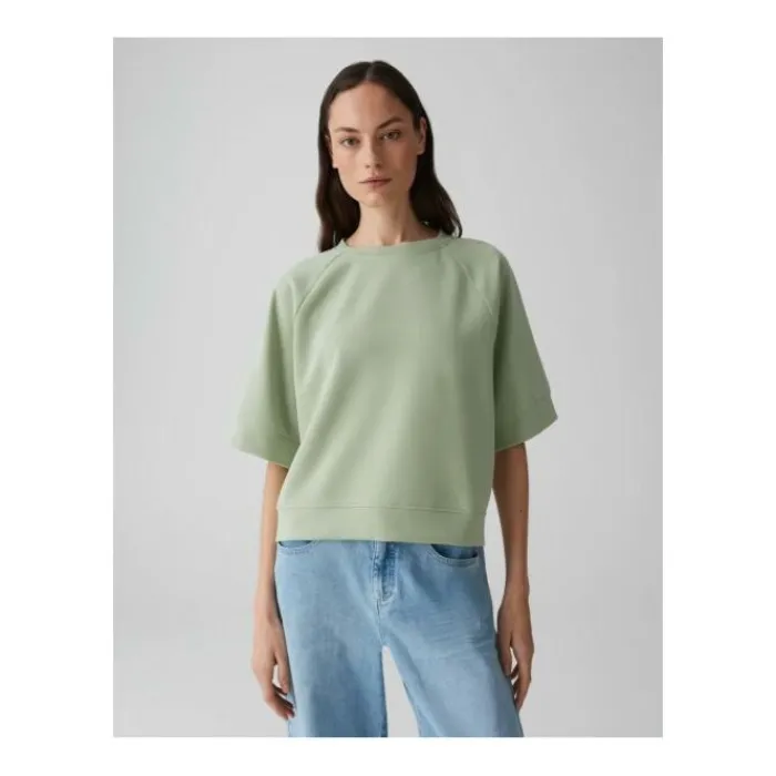 Sweatshirt Ginus van het merk Opus. Casual sweatshirt met een zomerse halve mouw en een fluweelachtig gevoel voor maximaal comfort. Het wijde silhouet en de brede gestikte zoom benadrukken de moderne, sportieve look.