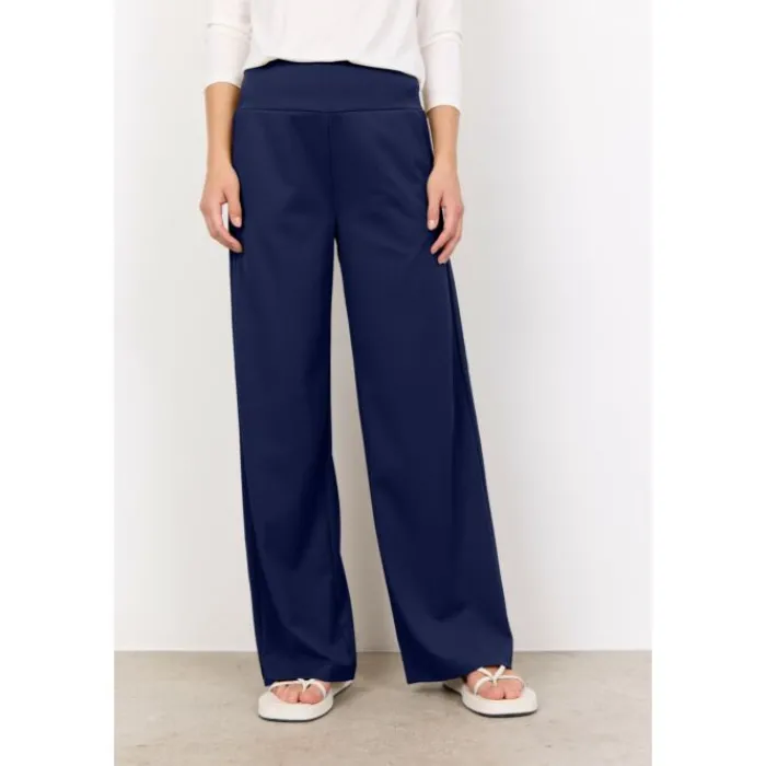 Deze broek van Soayaconcept is een klassieke broek van een fijne gerecyclede polyesterblend. De broek heeft een wijde pijp, een hoge taille en een elastische kwaliteit. Style deze prachtige broek met een klassiek shirt en een cardigan voor een minimalistische look.