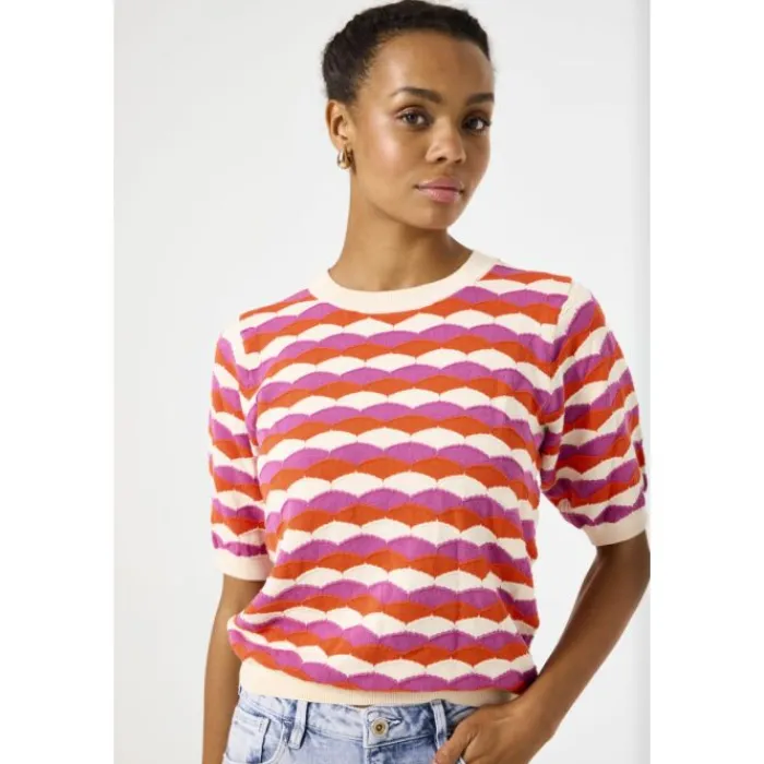 OmschrijvingAjour gebreide trui met patroon. Ideaal voor een trendy look! Deze trui heeft een ronde hals, korte mouwen e…