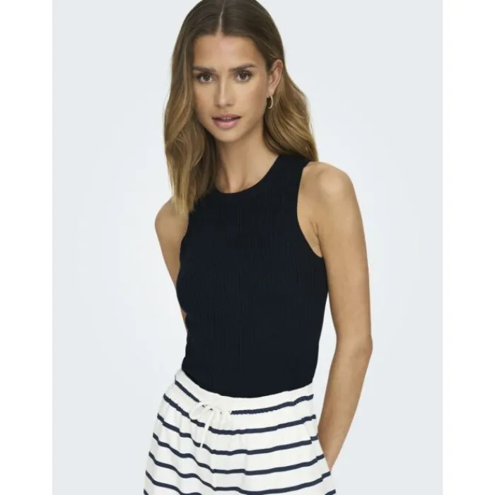 OmschrijvingRib gebreid.Producttype : TopHals : O-halsMouw : MouwloosLengte/maat : KortPasvorm : Knit fitMerkJdYHoofdkle…