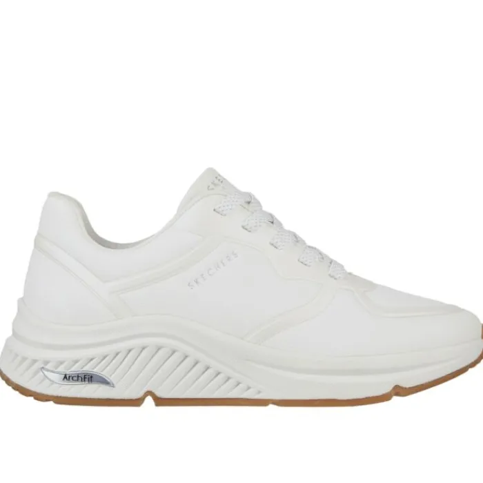 Zwarte damessneakers van SKECHERS. Deze hebben een arch fit en sluiten met veters.