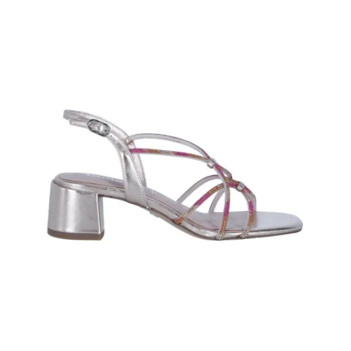 Dompel jezelf onder in de wereld van elegante sandalen die zowel vrouwelijk als modern zijn. Met delicate, gekruiste bandjes en een subtiel enkelbandje zijn ze perfect voor feestelijke gelegenheden zoals bruiloften, avondevenementen of chique feesten. De blokhak van 5,0 cm en de hoogwaardige afwerking van synthetisch materiaal en textiel zorgen niet alleen voor stijl, maar ook voor aangenaam comfort.