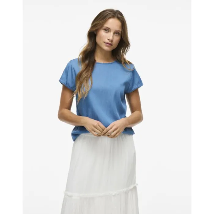 OmschrijvingProducttype : BlouseHals : O-halsMouw : KapmouwenPasvorm : Regular fitMerkVILAHoofdkleurJeansWasvoorschrifte…